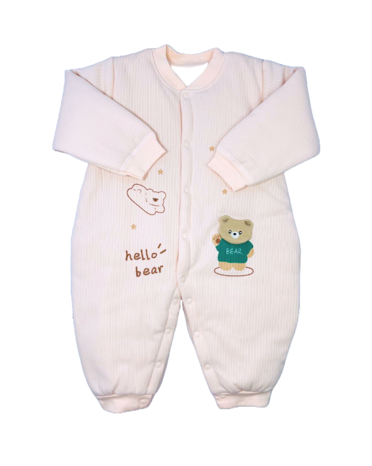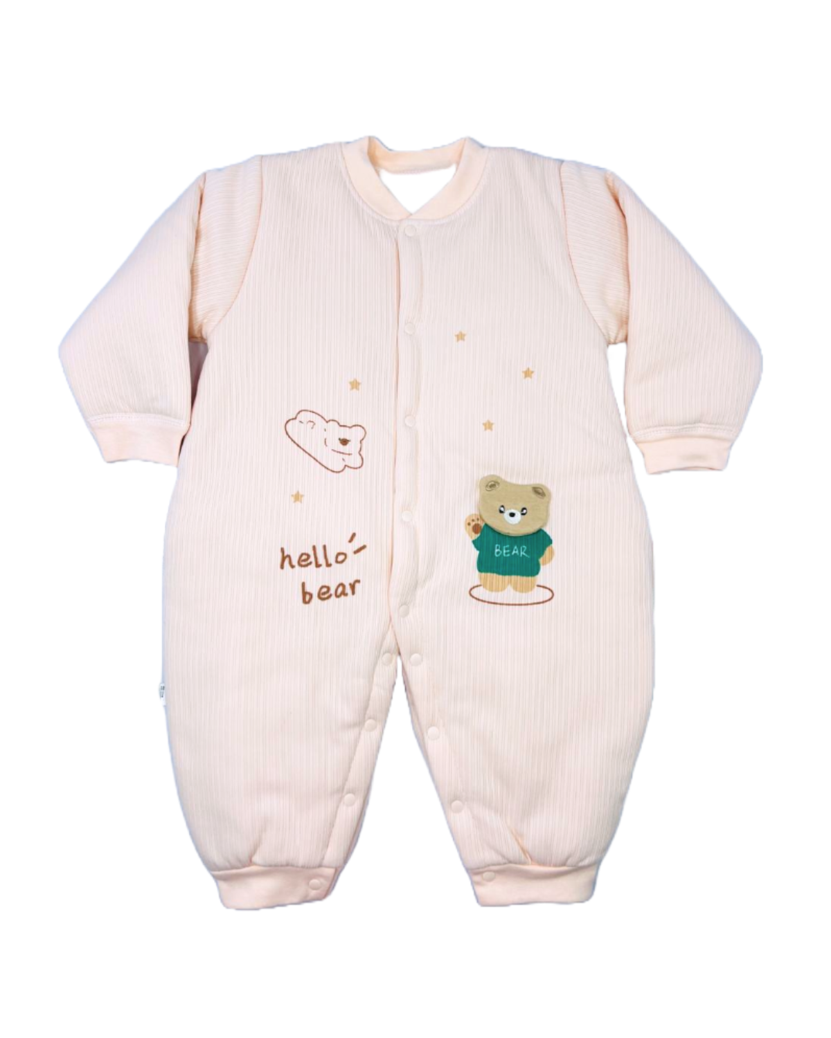 Comfortable and stylish romper for little babies, made with soft polyester fabric. Specially designed for newborns and toddlers to provide ease, comfort, and cuteness. Perfect for daily wear or sleep time.